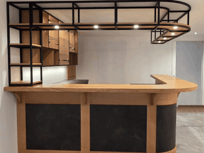 Un aménagement de bar industriel signé Val’Meubles : entre style, robustesse et fonctionnalité