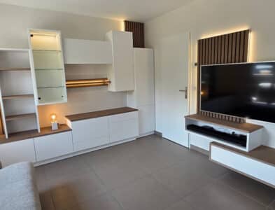 Un agencement TV élégant et fonctionnel, conçu sur mesure dans nos ateliers