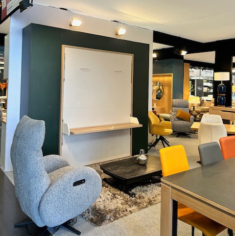 - 1 lit relevable pour couchage 140 x 200cm avec bureau en façade passant sous le couchage