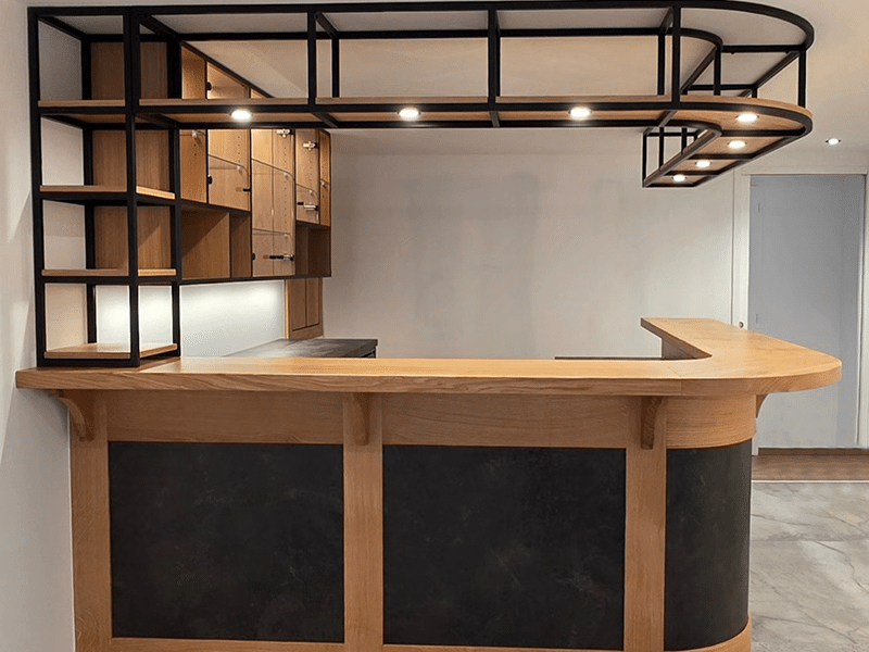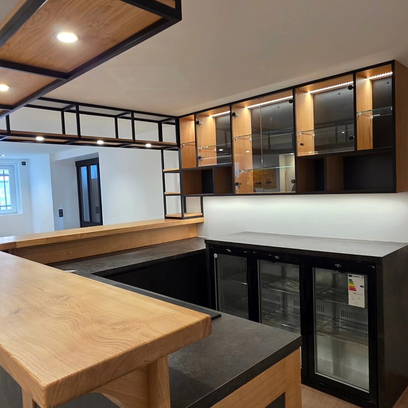Chez Val’Meubles, chaque projet est une création unique, pensée pour répondre précisément aux besoins de nos clients tout en alliant esthétique, durabilité et praticité. Dernièrement, nos équipes ont conçu, fabriqué, livré et installé un aménagement complet de bar industriel, pensé dans les moindres détails.