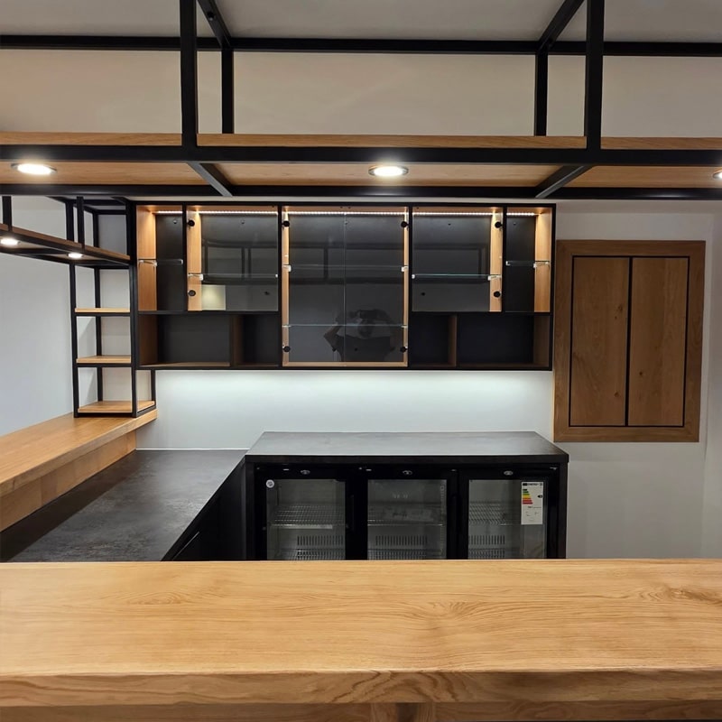 Un aménagement de bar industriel signé Val’Meubles : entre style, robustesse et fonctionnalité