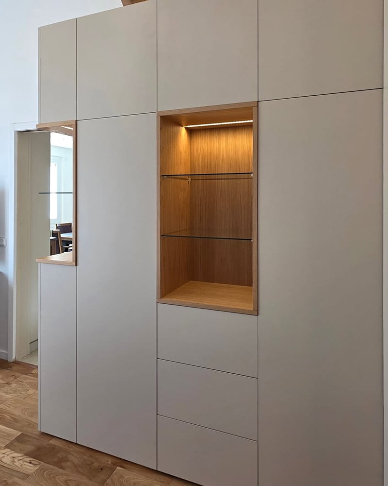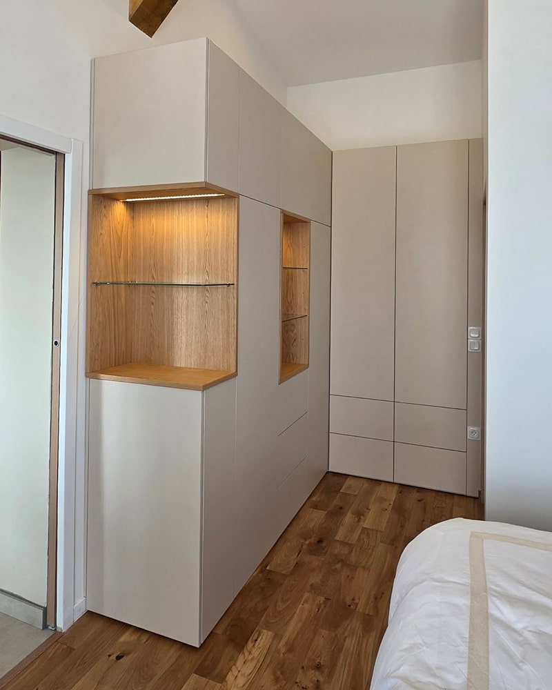 Ce dressing illustre parfaitement notre philosophie : créer des meubles qui s’intègrent harmonieusement dans votre intérieur, conçus pour durer et pour s’adapter à vos habitudes de vie.